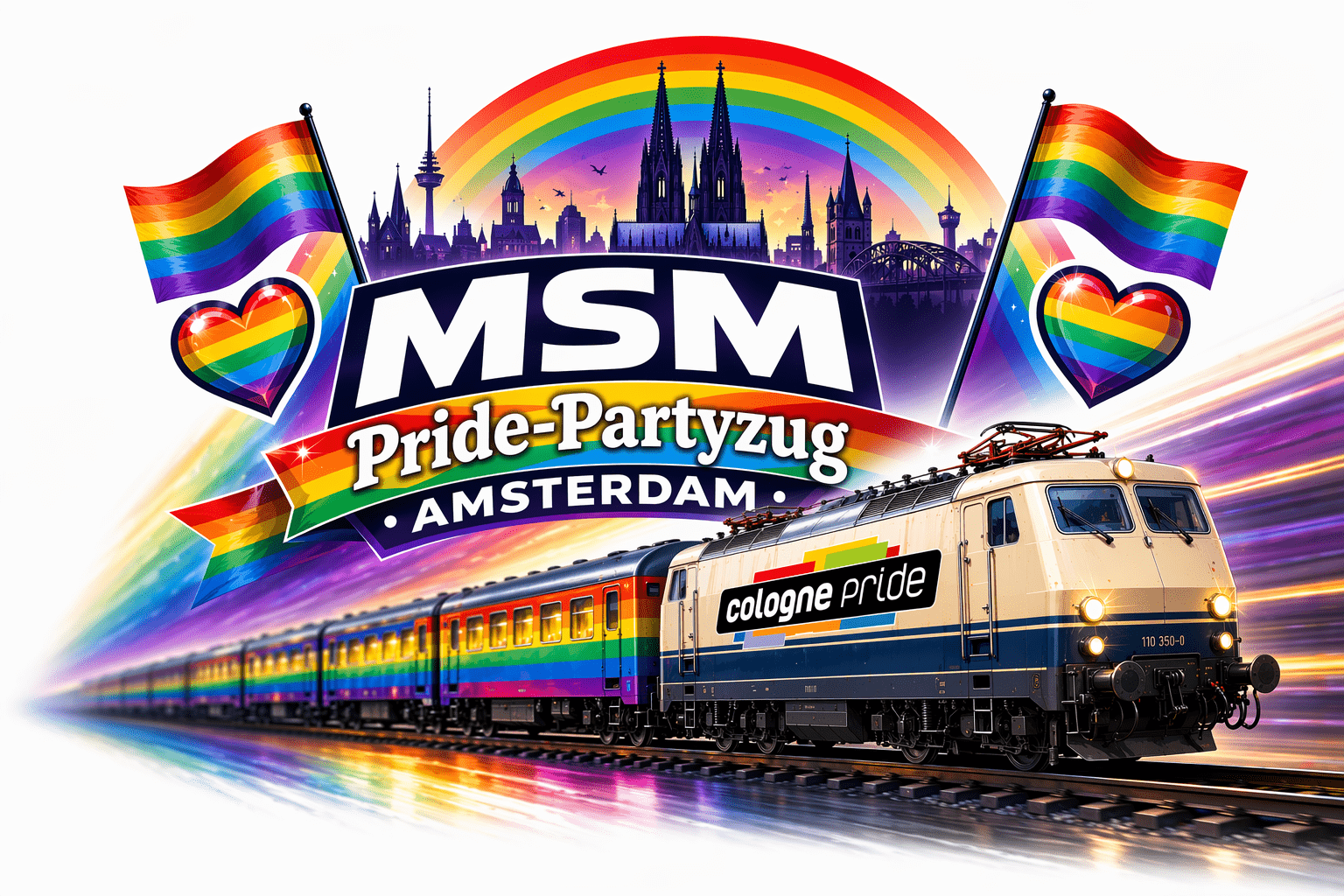 Wir sind stolz, diese besondere Fahrt zusammen mit ColognePride umzusetzen – für noch mehr Vielfalt, Zusammenhalt und pure Pride-Energie auf Schienen. Wir feiern Liebe, Freiheit und Diversität – und machen schon die Anreise zum Erlebnis!